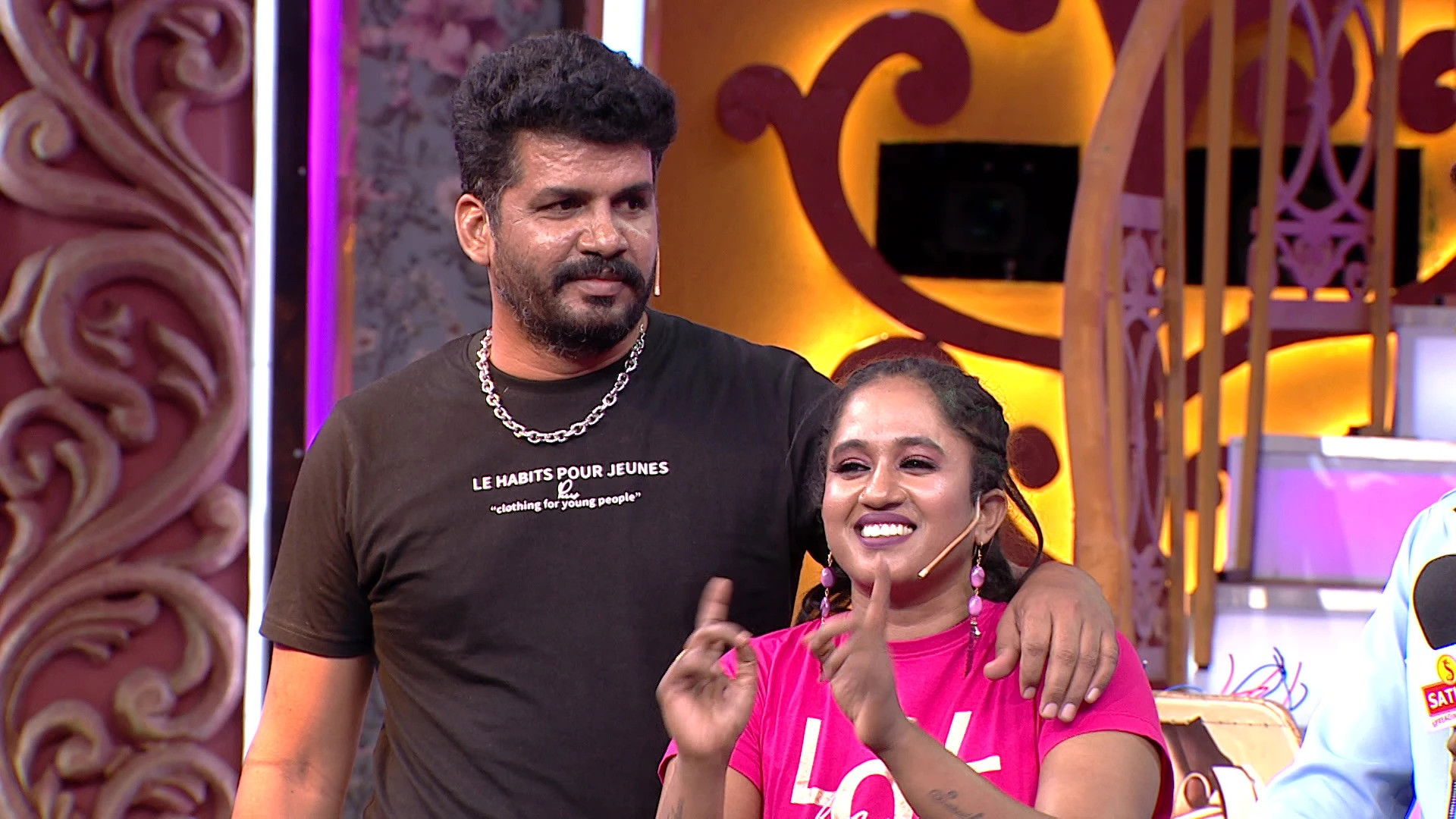 Indraja and Karthick reveal the good news about pregnancy. Subsequently, the couple hands their room key to Nanjil and Maria.